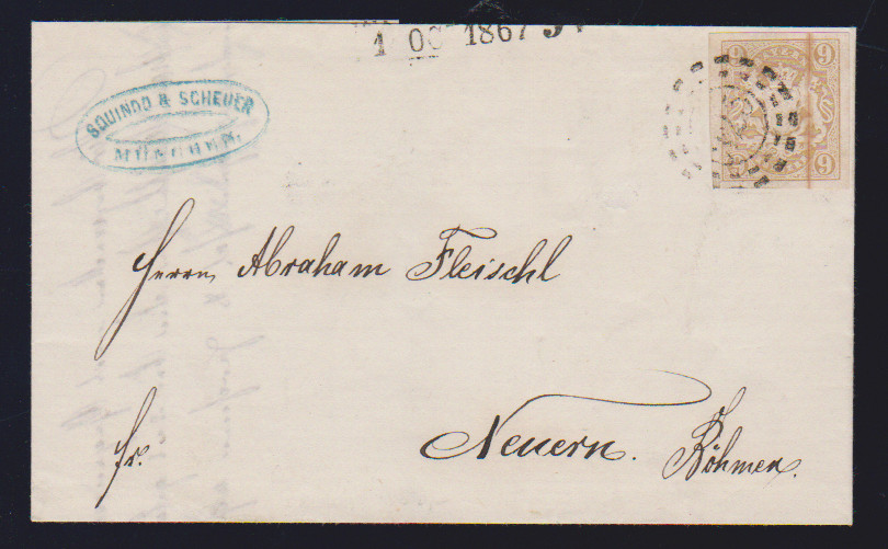 9 Kr. ockerbraun auf Kabinettbrief von München nach Böhmen, sign. Sem