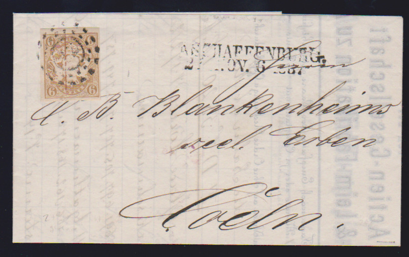1 Kr. dunkelblaugrün und 6 Kr. hellblau auf Prachtbrief mit oMR "508" und HK "Straubing" nach Mellrichstadt, sign. Schmitt