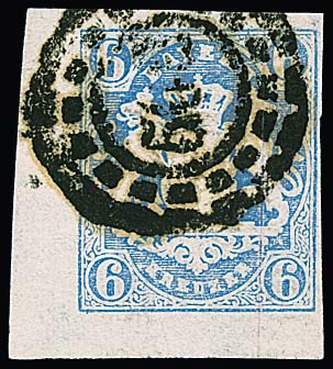 6 Kr. hellblau, linke untere Kabinett-Bogenecke mit oMR "508" (Straubing)