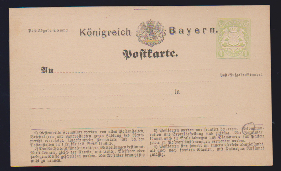 Ganzsachenkarte 1 Kr. grün in guter Type II zweimal ungebraucht, einmal mit Setzfehler "Rekommandation". Mi. 320,-