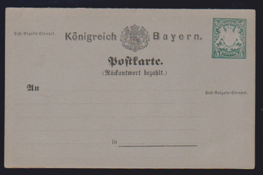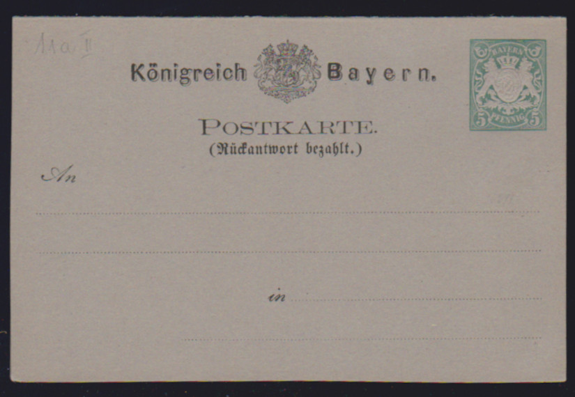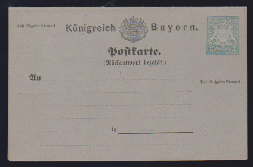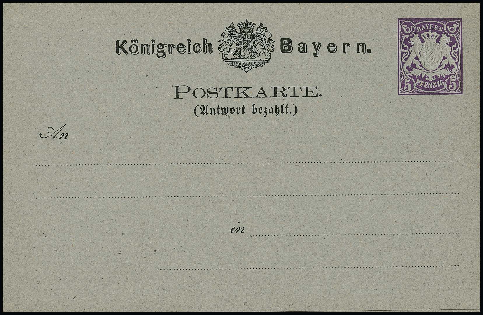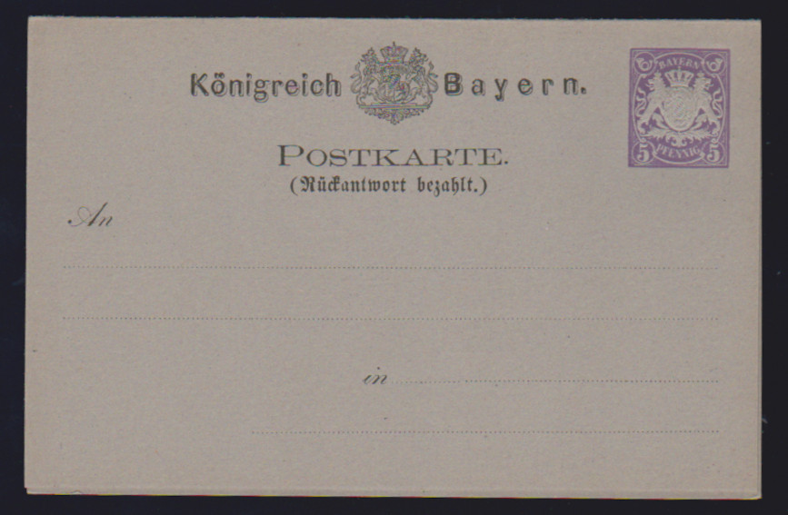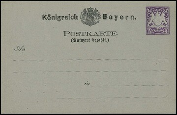 Ganzsachen-Doppelkarte 5 Pfg. violett, tadellos ungebraucht, selten! Mi. 900,-