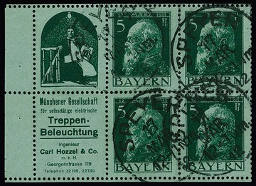 5 Pfg. Luitpold, Heftchenblatt 2.6 (inkl. Reklame "Treppenbeleuchtung") ungebraucht und gestempelt, Mi. 730,-