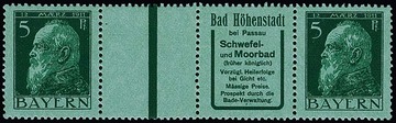 5 Pfg. Luitpold, waagerechter Reklame-Zwischensteg-Zusammendruck WZ1.28 ("Bad Höhenstadt") postfrisch, Mi. 750,-