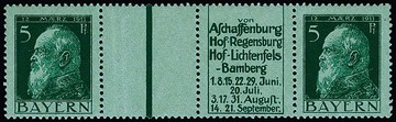 5 Pfg. Luitpold, waagerechter Reklame-Zwischensteg-Zusammendruck WZ1.34 ("Aschaffenburg, Hof ...") postfrisch, Mi. 500,-