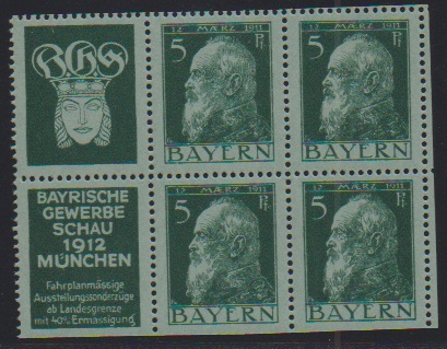 5 Pfg. Luitpold, Heftchenblatt 2.16 (Reklamen "B.G.S." und "Gewerbeschau", je ohne Rand) ungebraucht und gestempelt, Mi. rund 850,-
