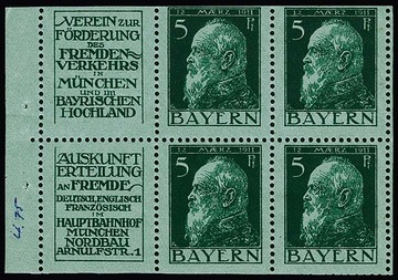 5 Pfg. Luitpold, Heftchenblatt 2.20 (Reklamen "Fremdenverkehr" und "Auskunft") ungebraucht (Heftchen-Zhg.), Mi. 320,-