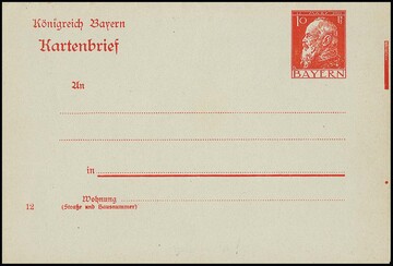 Kartenbrief-Ganzsache 10 Pfg. Luitpold tadellos ungebraucht in der seltenen nicht perforierten, geschnittenen Variante