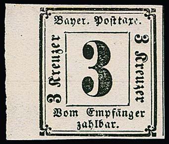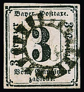 Portomarke 3 Kr. schwarz, zentrisch gestempeltes Kabinettstück, sign. Pfenninger. Mi. 400,-