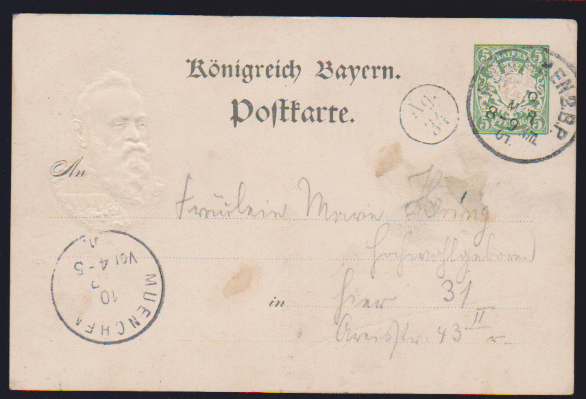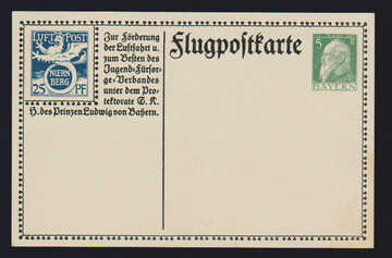 Sonderflug-Ganzsachenkarten 25 Pfg. blau, beide guten Varianten gebraucht (Mi. 525,-), dazu eine Privat-Ganzsache 10 Pfg. Ludwig eines Nürnberger Briefmarkenhändlers gebraucht an Senf/Leipzig