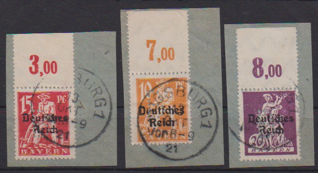 Flugpost-Ganzsachenkarten 25 Pfg. blau, drei sauber gestempelte Karten. Mi. 510,-