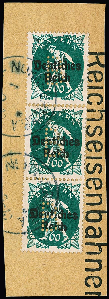 Portofreiheitsmarke 60 Pfg. blaugrün, Lochung "B", senkr. Paar und Einzelstück auf Prachtbriefstück mit K1 "Nürnberg 2.B.A.", Mi. 1050,-
