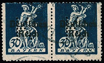 Portofreiheitsmarke 30 Pfg. für Kriegsbeschädigte im gestempelten Bedarfspaar, sign. Infla, Sieger. Mi. 400,-