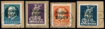 Portofreiheitsmarken, fünf sauber gestempelte Prachtbriefstücke (PF 2, 3, 6, 10, 34). Mi. 1350,-
