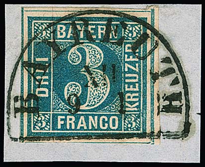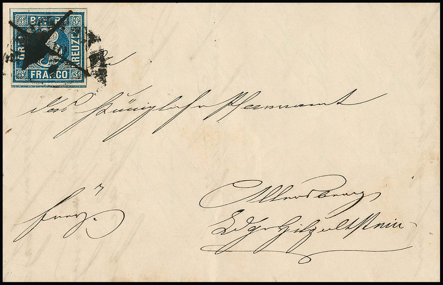 3 Kr. blau, Platte I, auf Luxusbriefstück mit idealem HK "Bayreuth"