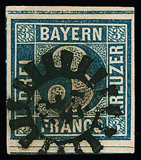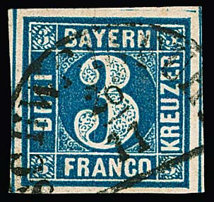 3 Kr. blau, Pl. 3, Kabinettstück mit klarem Umtausch-HK "Schweinfurt 26/11", sign. Schmitt und Fotoexp. Sem
