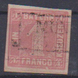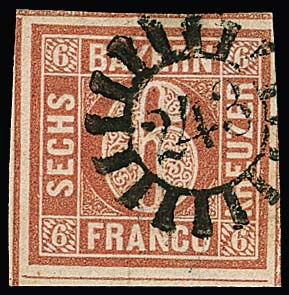 6 Kr. hellrötlichbraun, Type I, teils sehr breitrandiges Kabinettstück (drei Schnittlinien) mit gMR "243", Mi. 300,-
