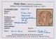 6 Kr. braun, Type I, Kabinettstück mit Plattenfehler "gebrochene Randlinie rechts", sign. Brettl mit Notiz