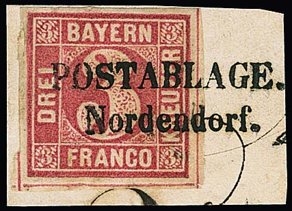 3 Kr. rosa auf Kabinettbriefstück mit idealem L2 "POSTABLAGE Nordendorf", Fotoexp. Sem