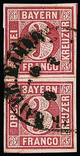 3 Kr. rosa, senkrechtes Kabinettpaar mit Bahnpost-HK, sign. Sem