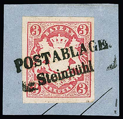 3 Kr. karminrosa auf Luxusbriefstück mit vollem L2 "POSTABLAGE Steinbühl"