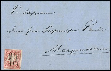 3 Kr. rosa, je perfekte Exemplare auf zwei Briefen, einmal von Lindau im Grenzrayon nach Romanshorn/Schweiz, sowie aus Braunenburg 1867, jedoch ohne Ausgabestempel und Marke nur handschriftlich mit Datum "9/11" entwertet