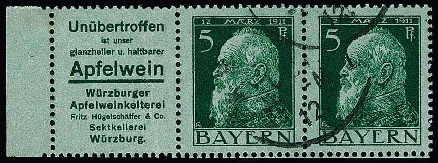 5 Pfg. Luitpold, waagerechter Reklame-Zusammendruck W1.2 ("Apfelwein") gestempelt, Mi. 300,-