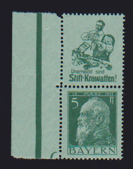 5 Pfg. Luitpold, senkrechter Reklame-Zusammendruck S1.6 ("Stift-Krawatten") postfrisch, Mi. 200,-