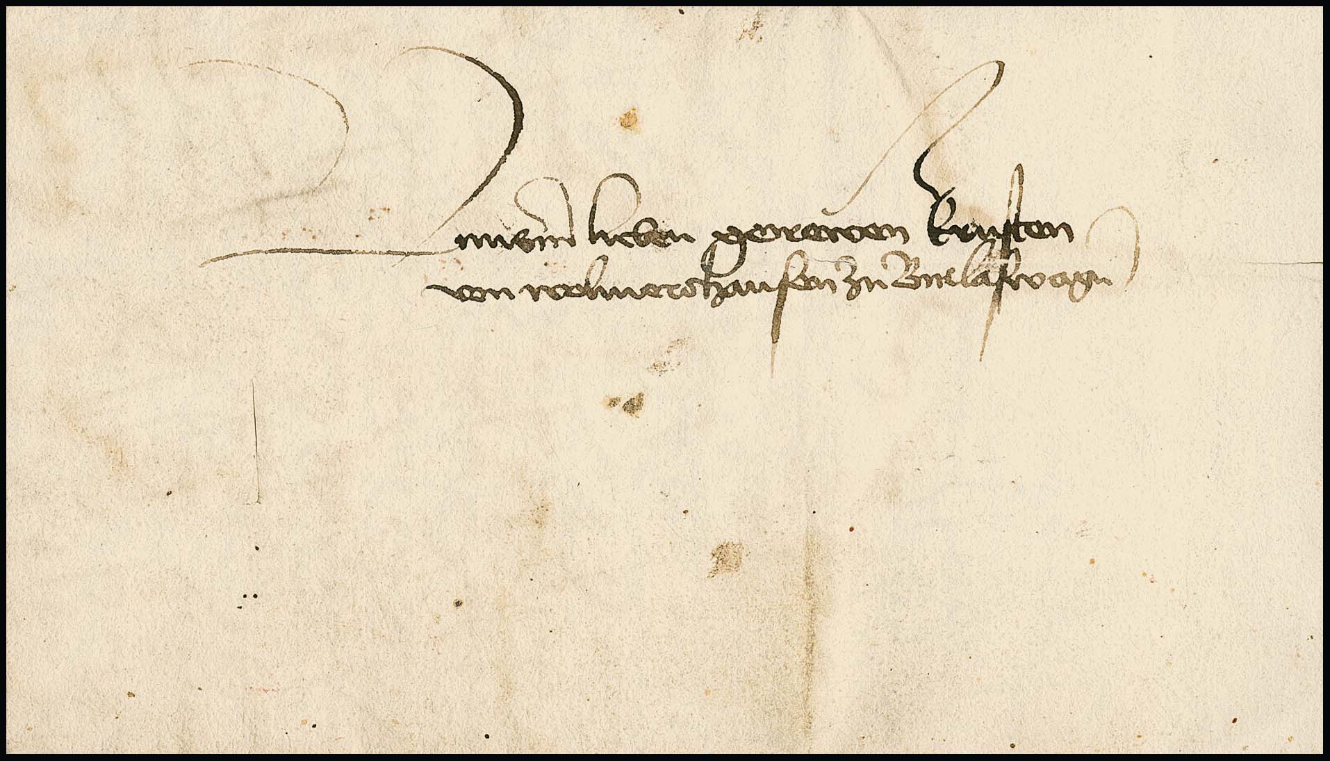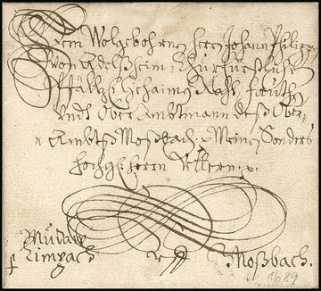 "Aschaffenburg", 1604, dekorativer Schnörkelbrief nach Eltz
