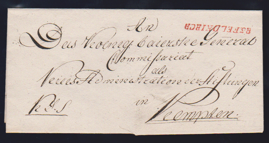 "Feldkirch", (1810), (bayer. Post in Tirol), klarer roter L1 "R.3 FELDKIRCH" auf Brief nach Kempten