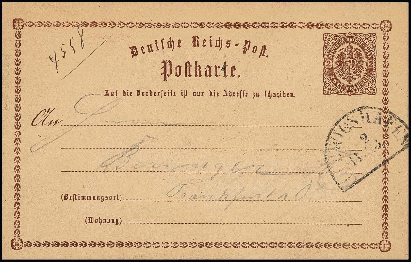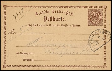 "Ludwigshafen", bayerischer HK als seltene Fremdentwertung auf Brustschild-Ganzsachenkarte 2 Kr. braun (Adresse etwas nachgezogen), Attest Brugger