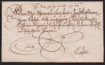 "München", 1649, dekorativer Schnörkel-Altbrief mit Inhalt nach Wasserburg