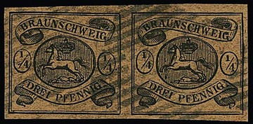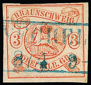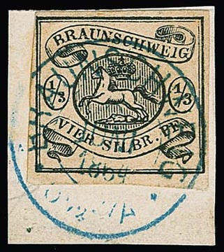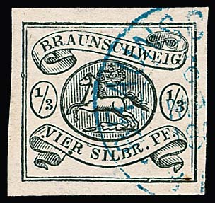 1/3 Sgr. schwarz, allseits sehr breitrandiges Kabinettstück mit K2 von Braunschweig, Fotoexp. Lange. Mi. 450,-