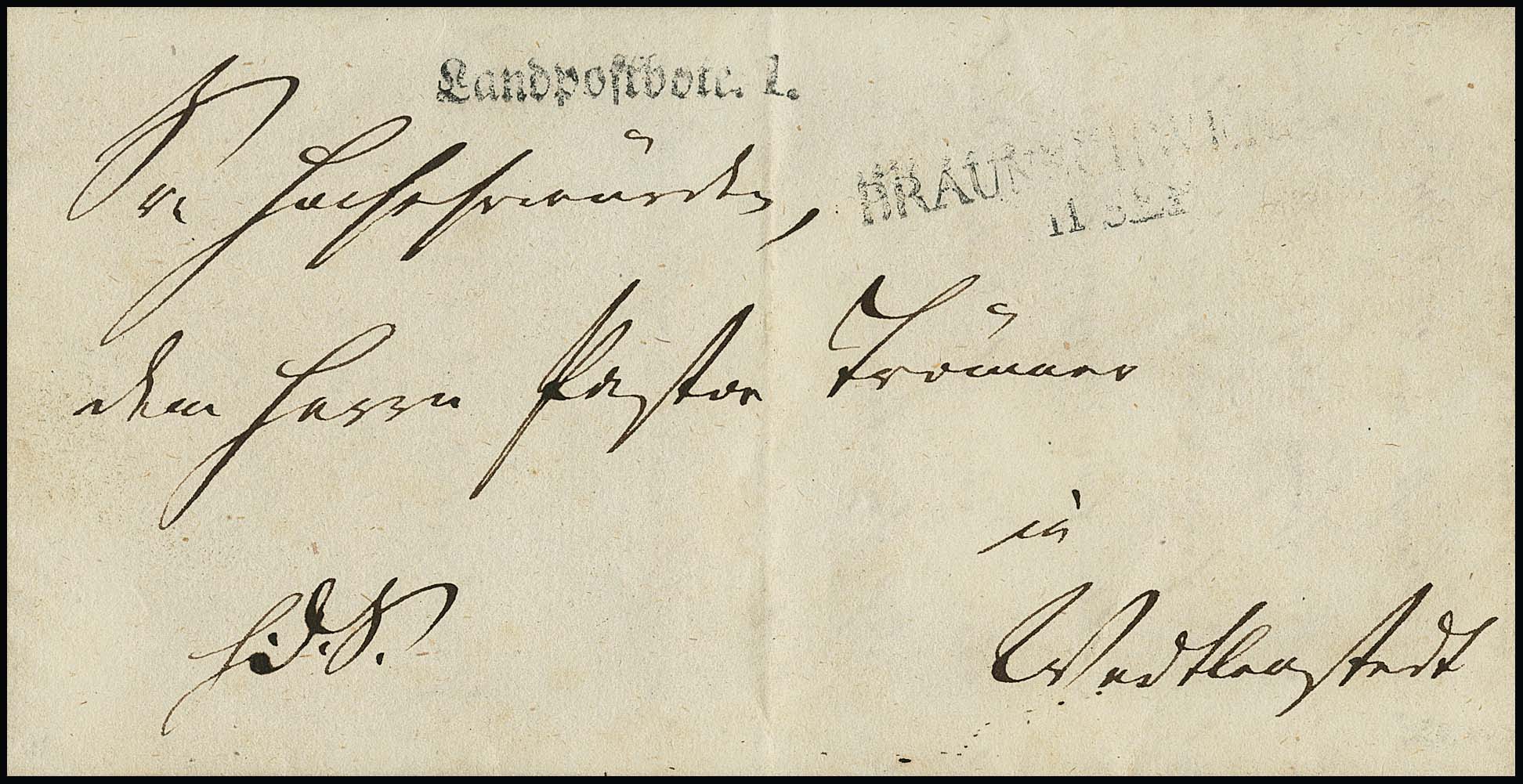 "Braunschweig", 1838, L2 nebst seltenem Fraktur-L1 "Landpostbote 1" sehr klar auf Brief mit Inhalt aus Timmerlah