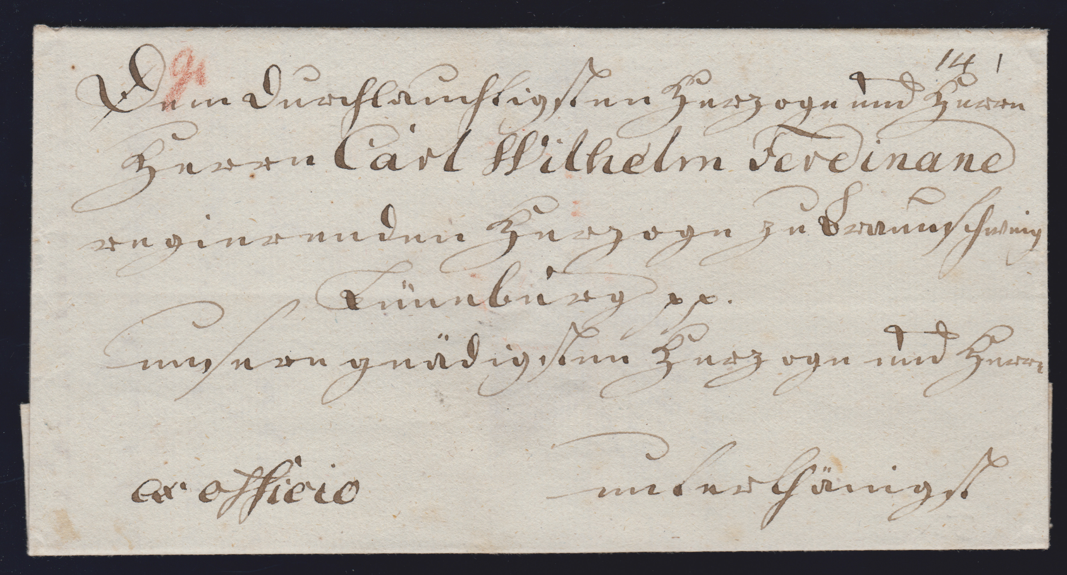 "Braunschweig F.N.1", 1873, roter Franko-K1 nebst seltenem rotem Blanko-Paketaufkleber "Aus ... 915", violett eingestempelt "Braunschweig", auf Paketbegleitbrief. Seltene Kombination!