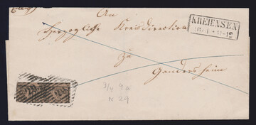 "29" nebst Ra2 "Kreiensen" je klar auf Brief (rs. Klappenteile nicht ganz vollständig) mit 3/4 Ggr. in besserer Farbe