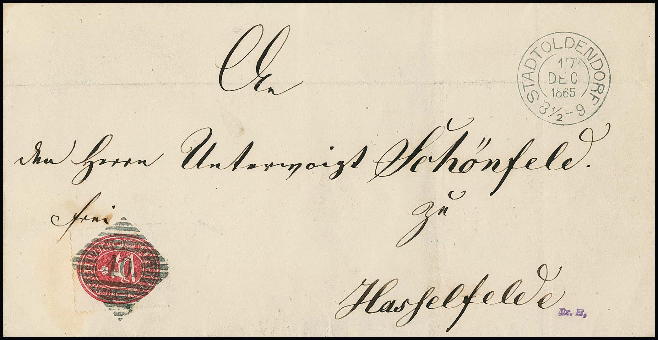 "40" nebst K2 "Stadtoldendorf" klar auf Prachtbrief Wappen 1 Gr., Briefpapier leichte Spuren (u.a. rs. ein Klappenteil nicht ganz kpl.)