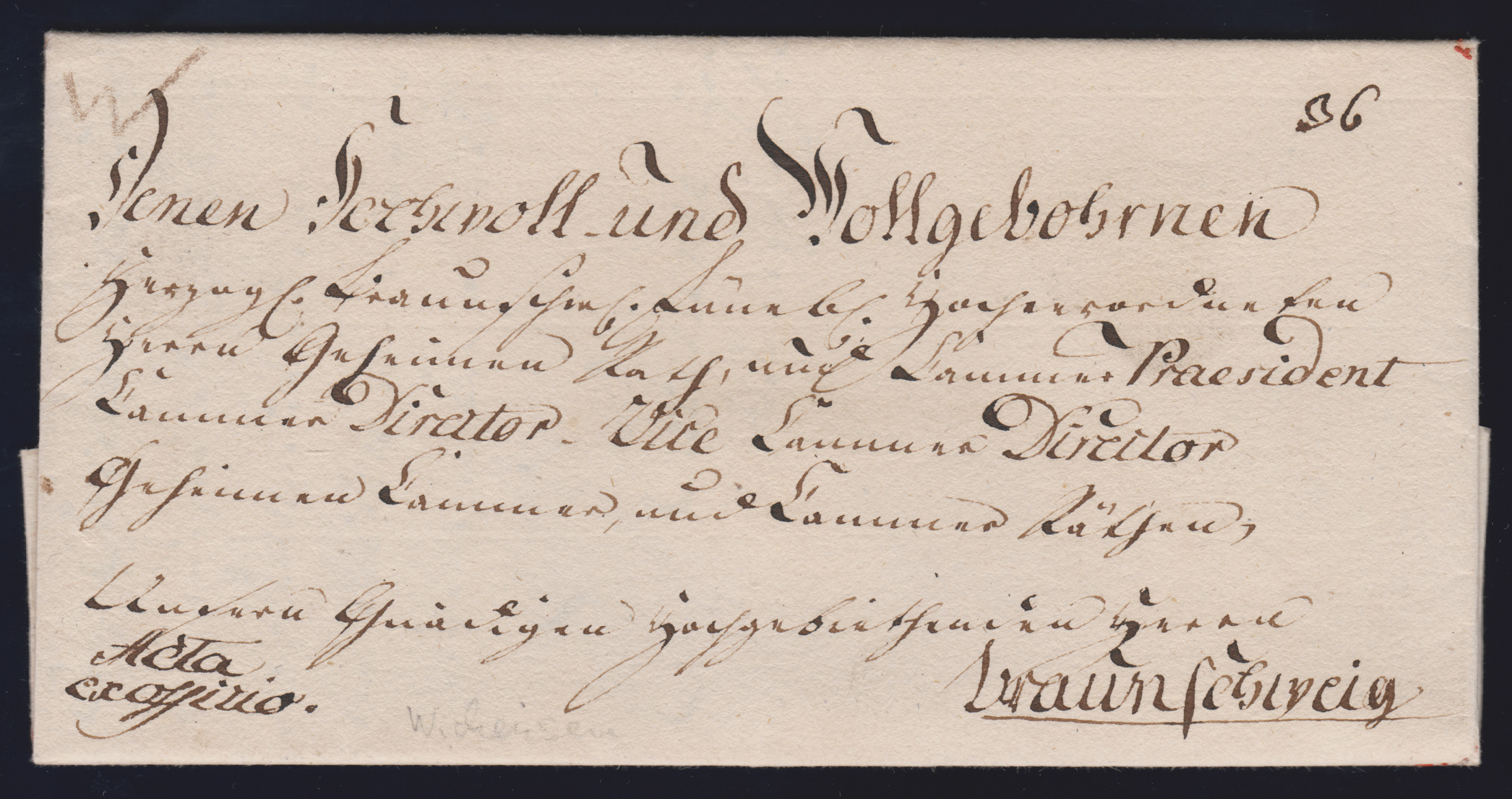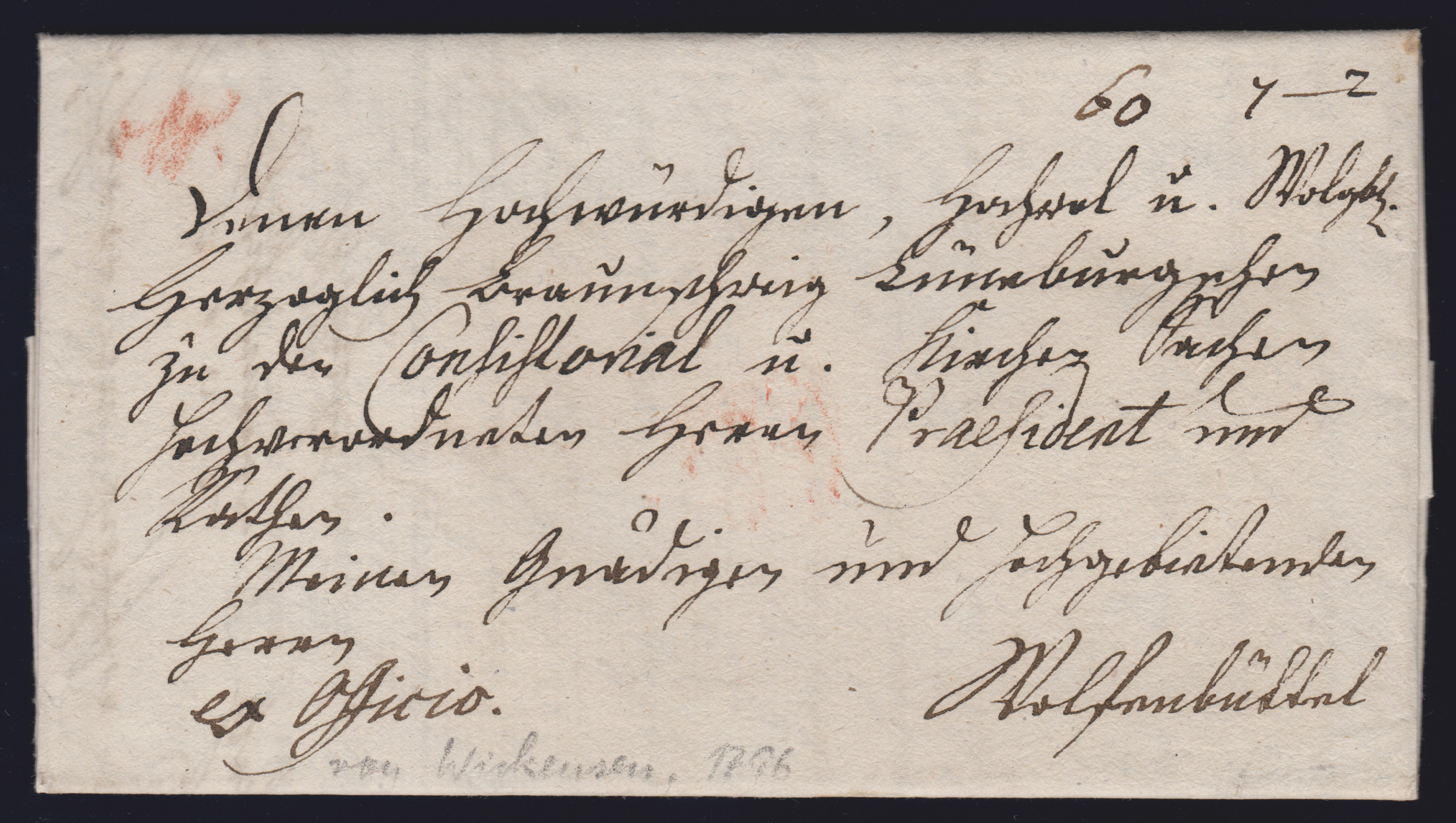 "Wendhausen", 1790, sehr seltener kleiner Postort bei Lehre, offensichtlich nur kurzzeitig geöffnet und in der Literatur bisher nicht gelistet, klare handschriftliche Aufgabe "v. Wendhausen" auf Brief mit Inhalt nach Wolfenbüttel