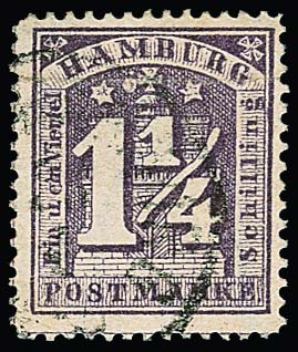 1 1/4 Sch. violettgrau, Kabinettstück mit ungewöhnlicher Doppelentwertung durch NS "2" und Strichstempel. Fotoexp. Huylmans