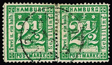 2 1/2 Sch. grün, Druckstein II, gestempeltes Prachtpaar, sign. Krause, Pfenninger, sowie 3 Sch. preußischblau gest. (Fotoexp. Lange "einwandfrei"). Mi. 280,-