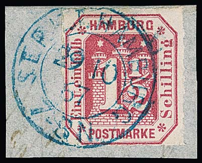 1 1/2 Sch. rosakarmin, Kabinettbriefstück mit K2 von Hamburg, sign. Drahn. Mi. 160,-