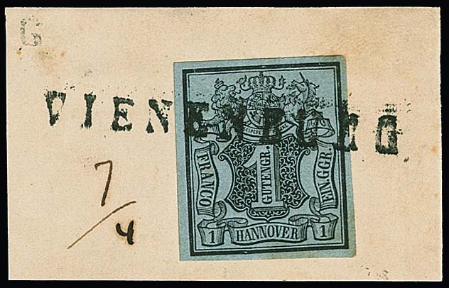 1 Ggr. schw./graublau auf Luxusbriefstück mit schwarzem L1 "Vienenburg" voll. Aufgrund der Länge dieses Stempels ist ein vollständiger Abschlag eher ungewöhnlich!