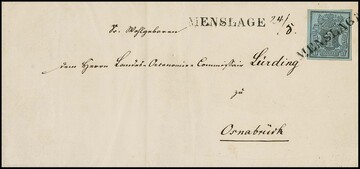 1 Ggr. schw./graublau, Kabinettstück auf Faltbrief mit seltenem L1 "Menslage" und nebengesetzt