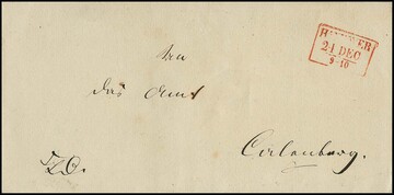 "Hannover", 1850, klarer roter K2 auf gefaltetem Kabinett-Vorschußbrief nach Hedemünden, eine der großen Vorphilatelie-Raritäten Hannovers, ein Liebhaberbrief