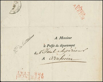 "Aurich", 1813, 7.4., sehr seltener roter L2 "DÉB. 124 AURICH" rückseitig auf Brief aus Paris nach Arnheim/Holland, ArGe 2250,-, Feuser 1200,-