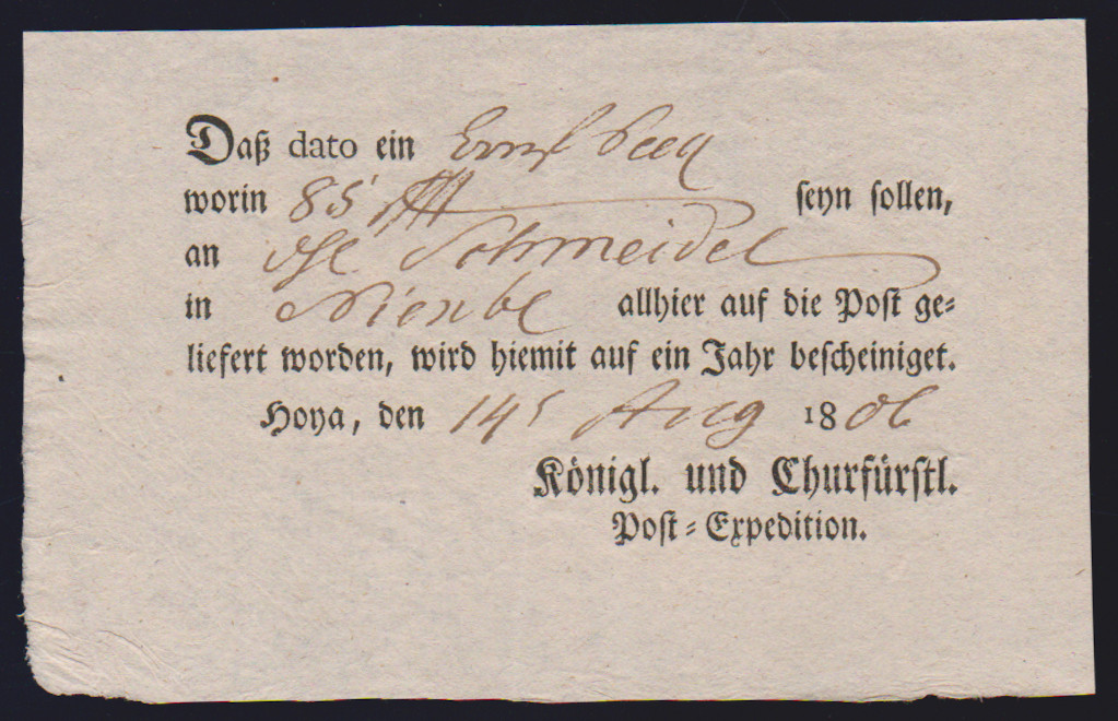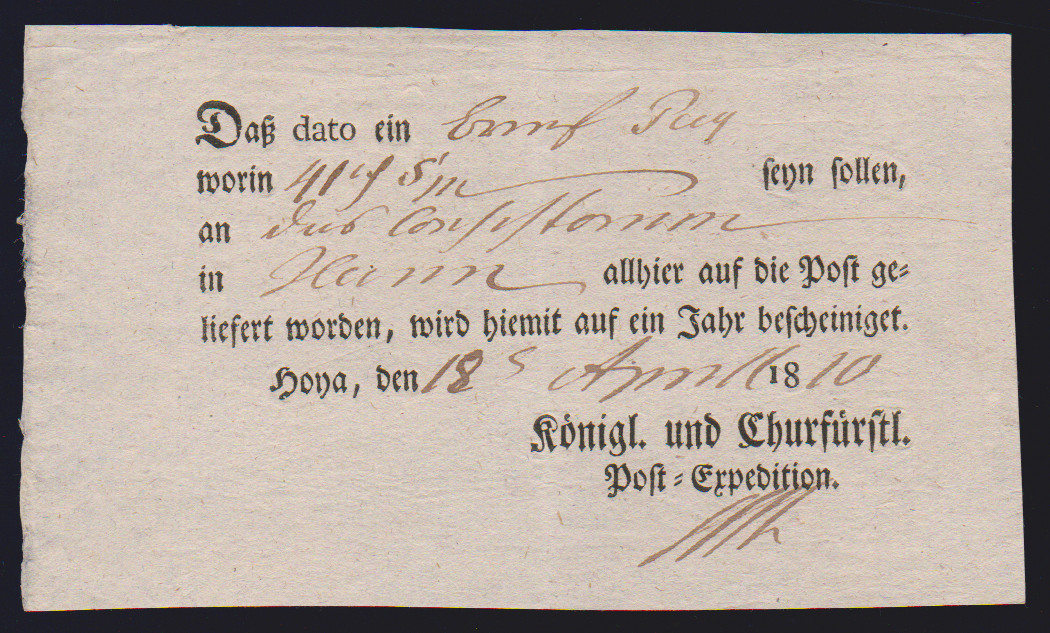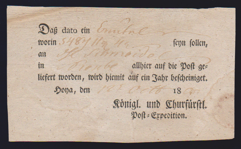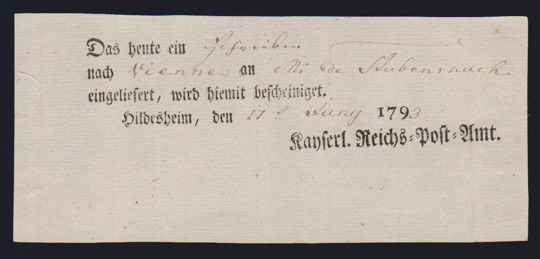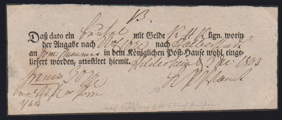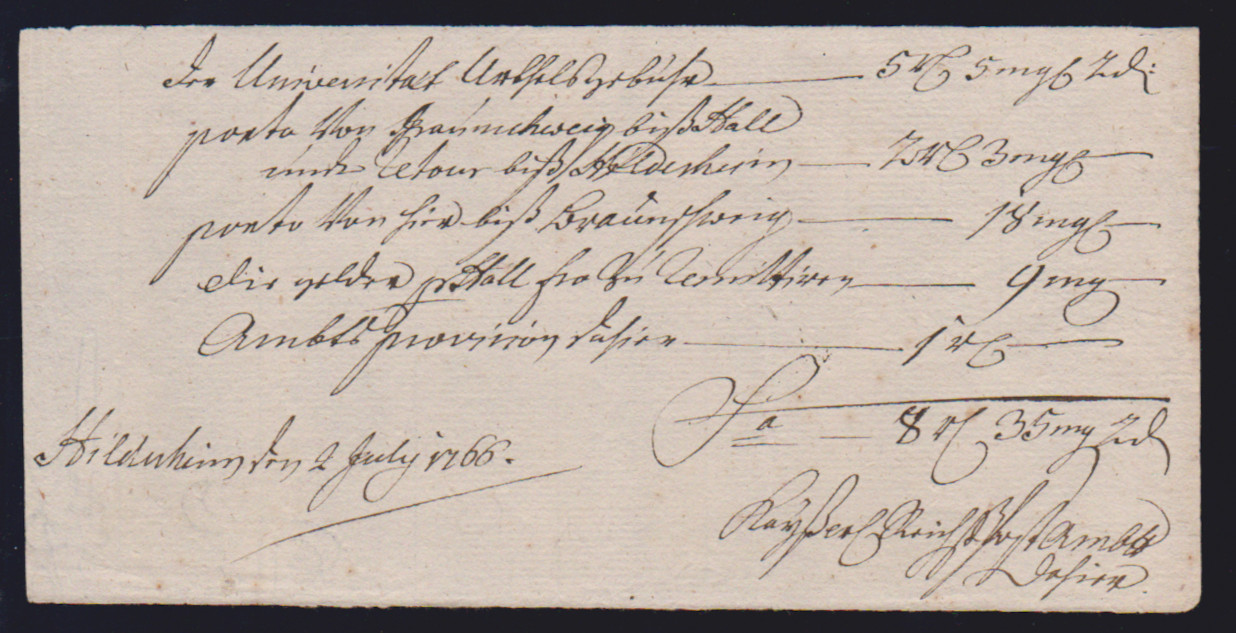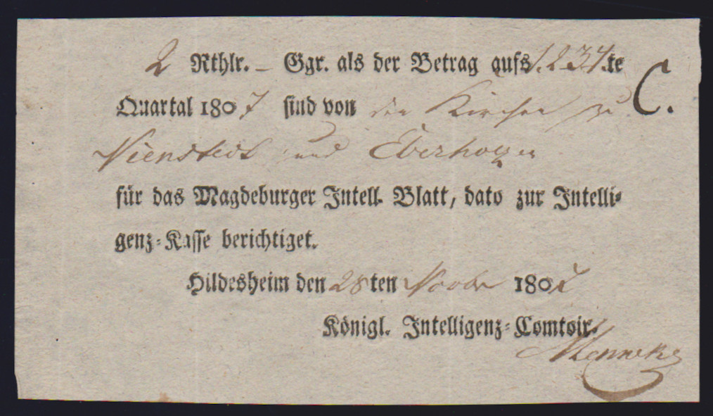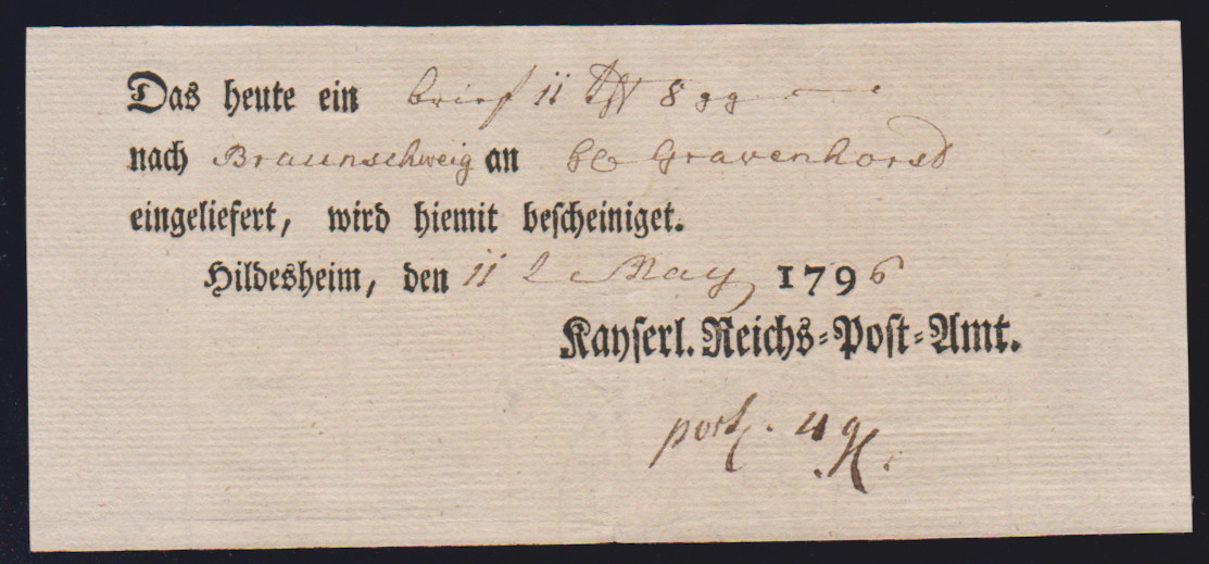 "Hildesheim", 1766-1807, zehn Reichspostscheine, meist Ortsdruck (einer hs., eine Zeitungsquittung)