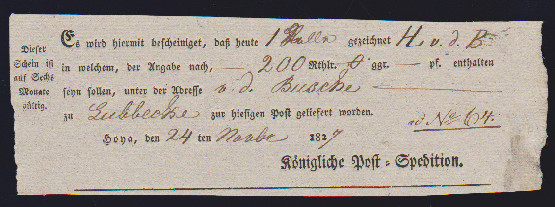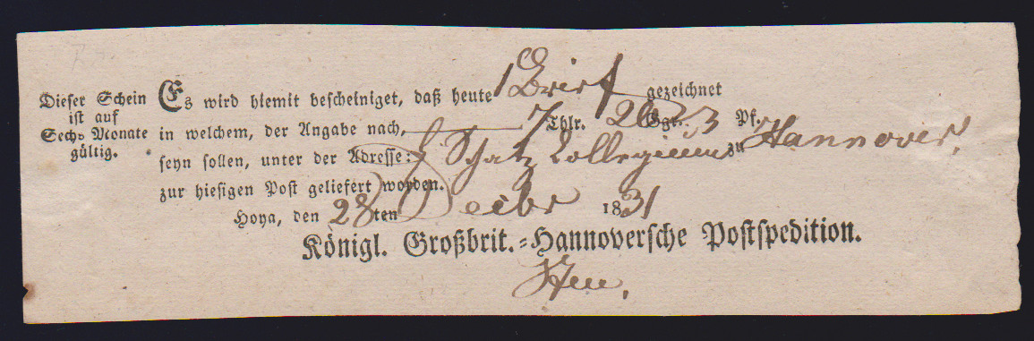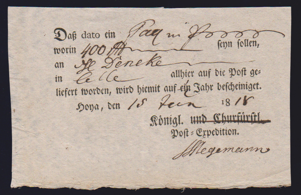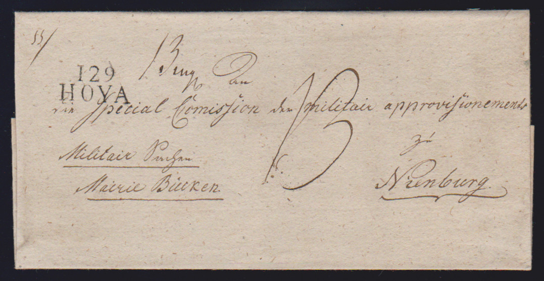 "Hoya", 1812, je L2 "129 HOYA" sauber auf zwei Prachtbriefen (eine Hülle) nach Hannover bzw. Nienburg