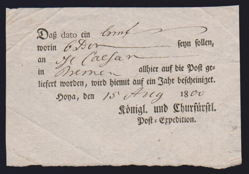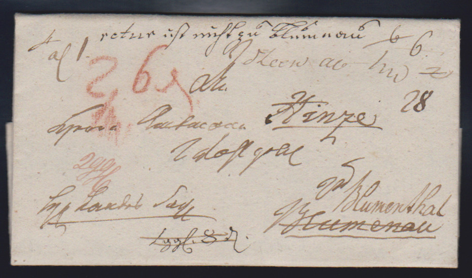 "Leese", 1803, hs. "D`LEESE" auf interessantem Retourbrief aus Minden-Petershagen nach Blumenau und dann nach Blumenthal, zahlreiche Taxen