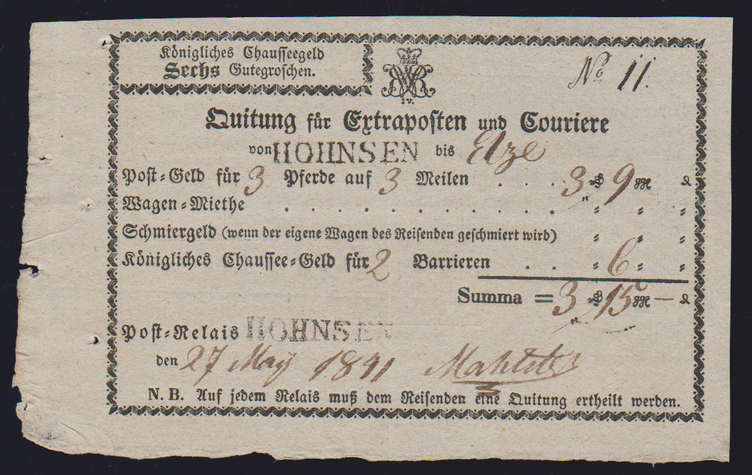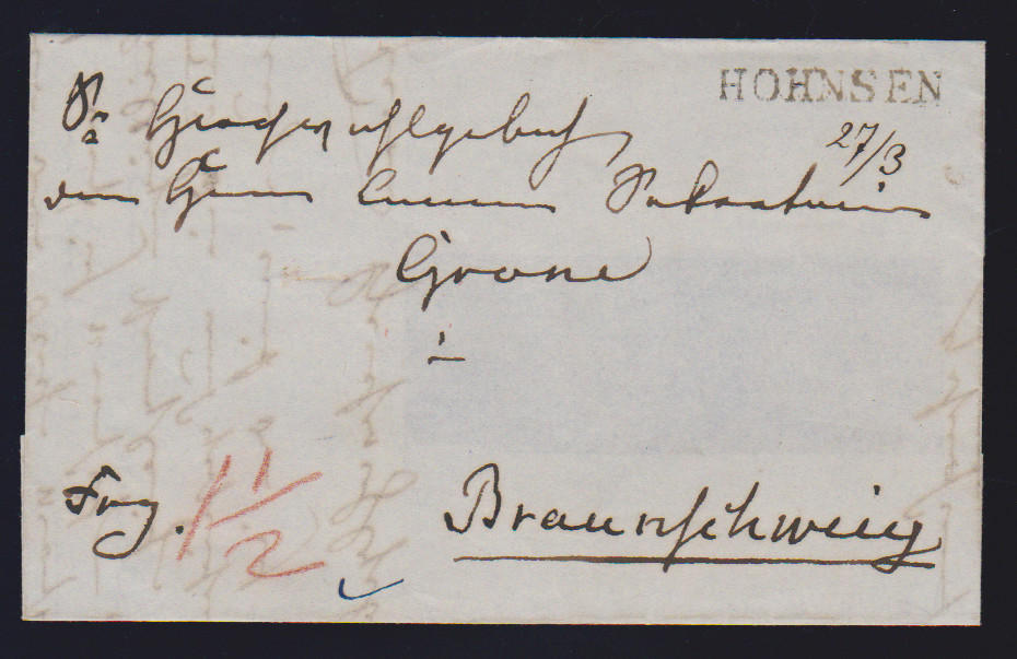 "Hohnsen", 1841-1848, klare L1 auf drei Briefen (ein Paketbrief und eine Extrapostquittung)
