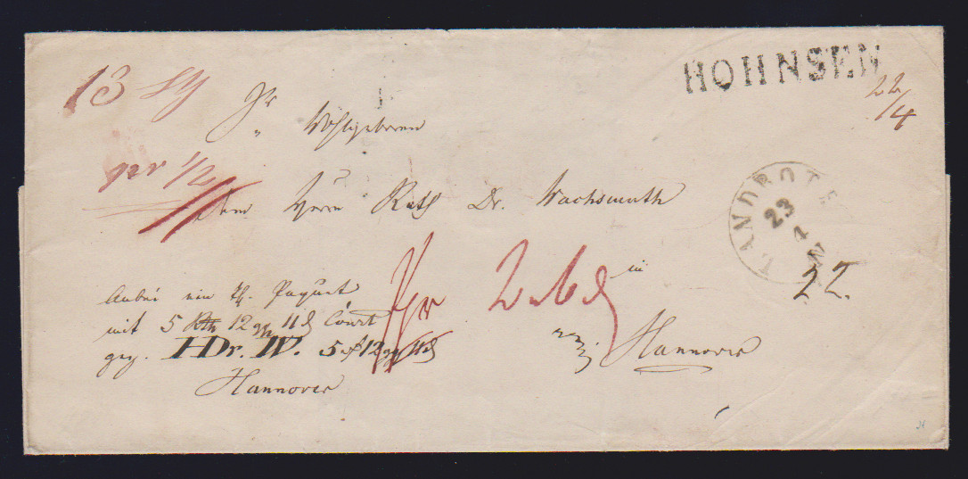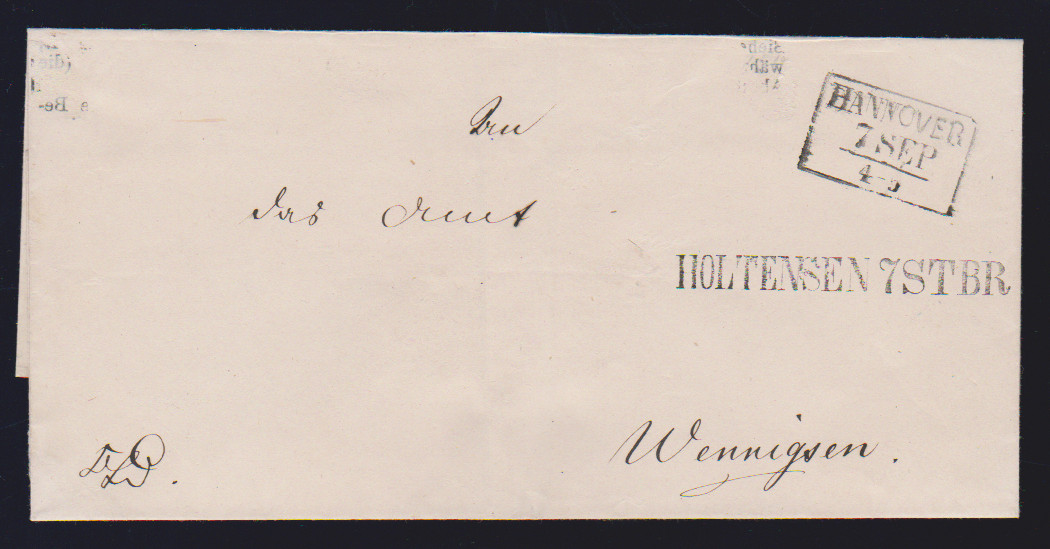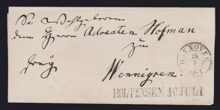 "Holtensen", (1850), hs. bzw. zweimal klarer L1 auf drei Briefhüllen, nebst K2 bzw. Ra3 "Hannover", nach Wennigsen und Hannover