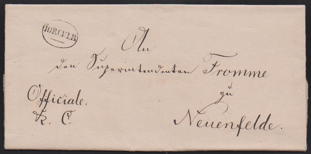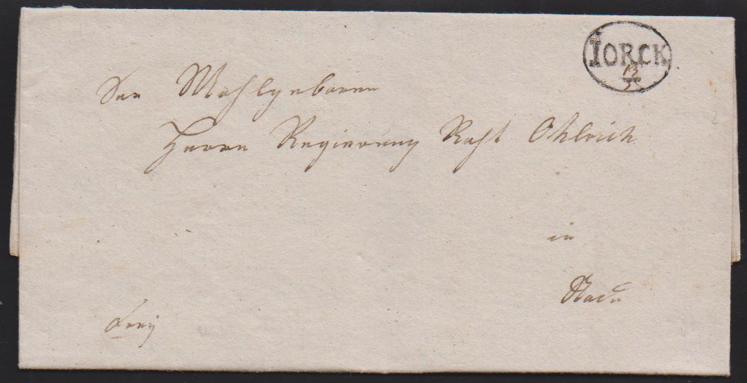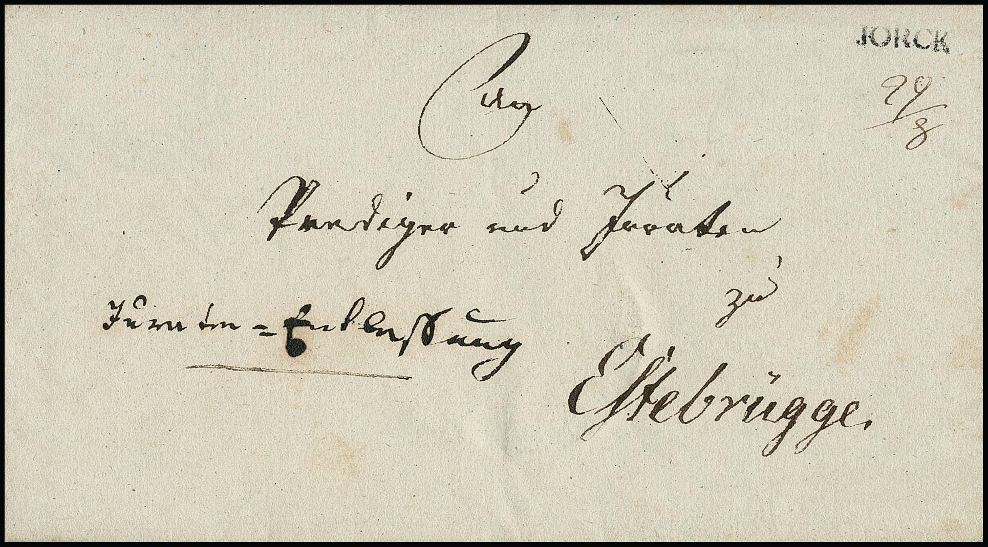 "Jorck L.B.", 1823-1838, L1 bzw. Ovalstempel (2), seltene Landbriefträgerstempel (ArGe LBS 02, 03, 04) auf drei Prachtbriefen nach Stade, Neuenfelde und Estebrügge